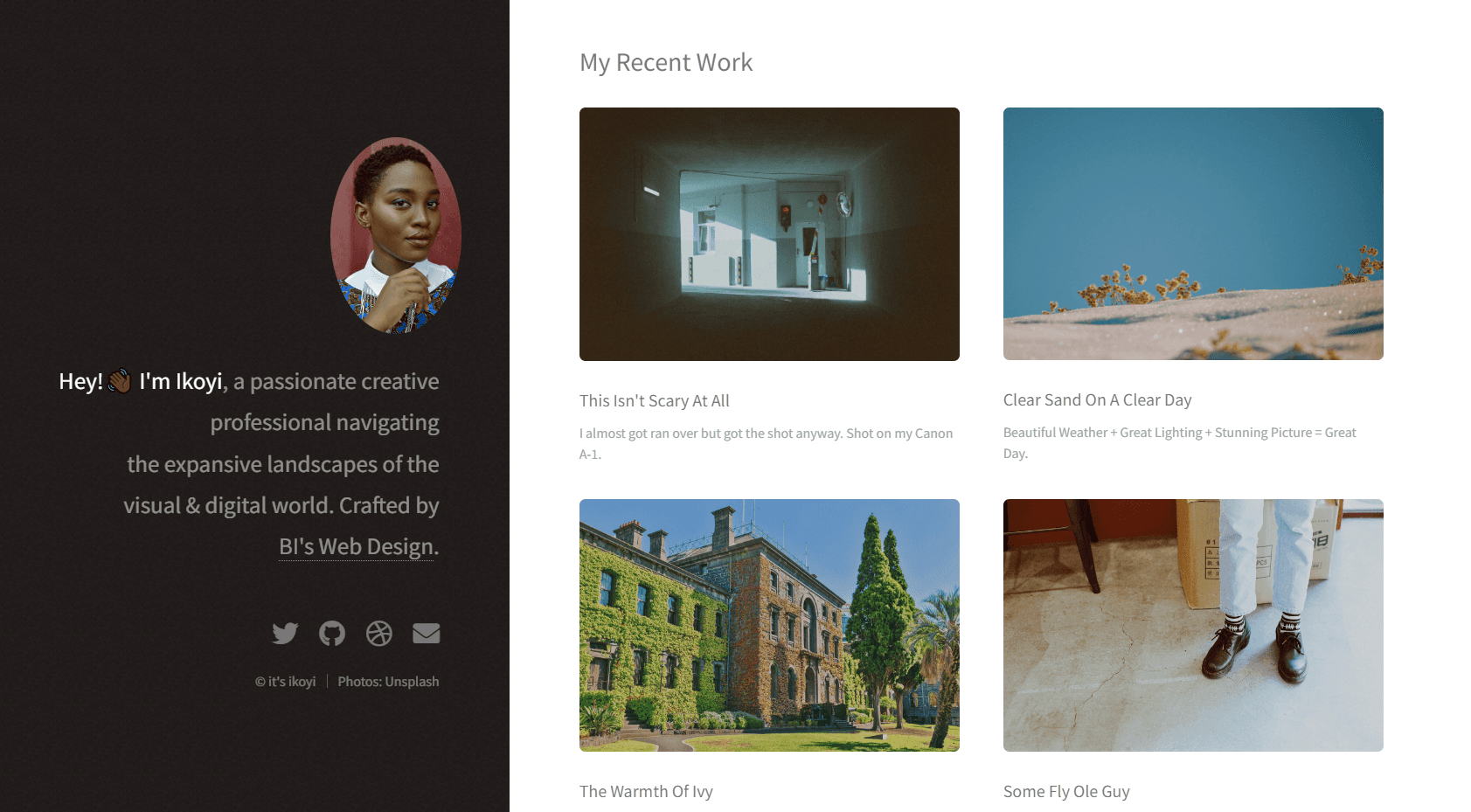 Ikoyi's Portfolio is a fully responsive photography portfolio website developed using HTML, CSS and JavaScript.